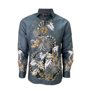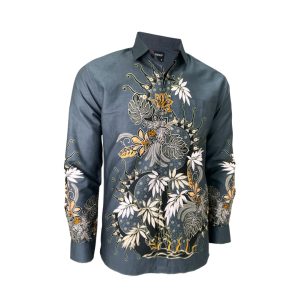 Redcliff Kemeja Pria Batik Panjang Abu Tua 6TK30065X
