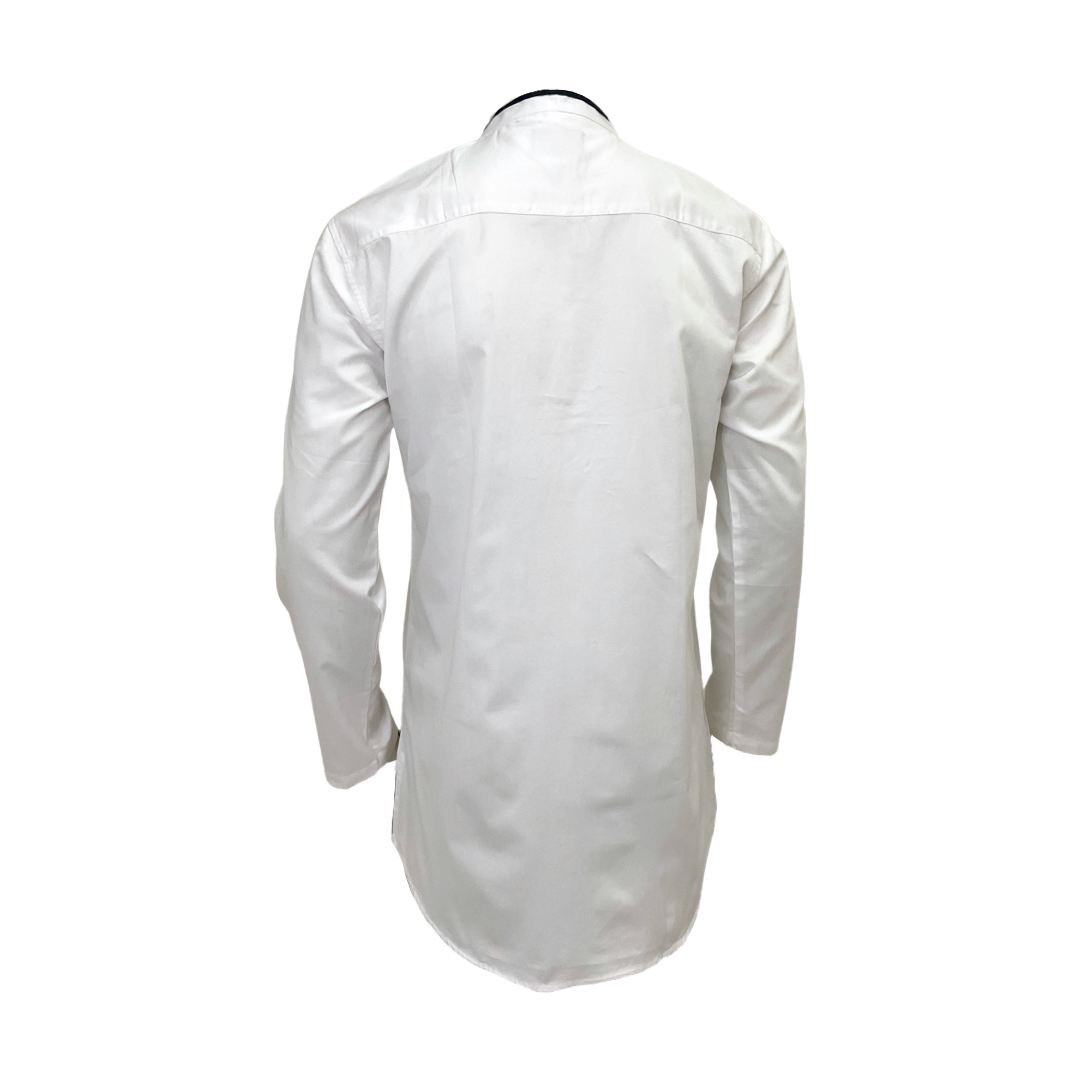 Tampil bersih dan khidmat dengan Baju Koko Kurta Lengan Panjang warna Putih ini. Perpaduan desain kurta yang panjang dengan aksen bordir vertikal yang kontras memberikan kesan postur tubuh yang lebih jenjang, rapi, dan sangat religius. Pilihan tepat untuk ibadah harian, seragam umroh, maupun acara formal keagamaan.