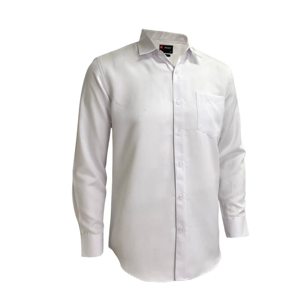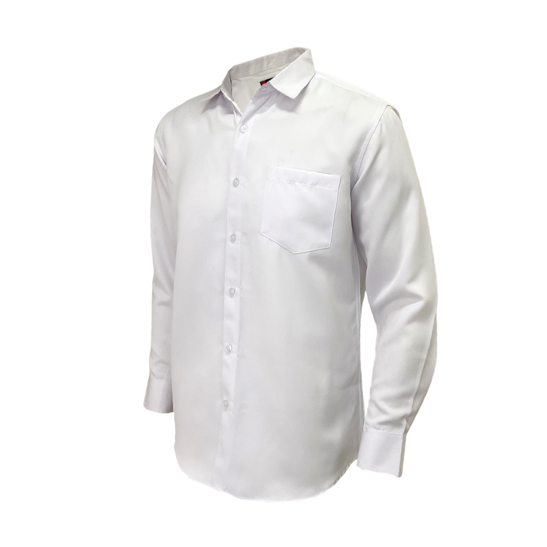 • Kerah: Kerah standar (point collar) yang kaku dan rapi, cocok untuk dipadukan dengan dasi atau setelan jas.